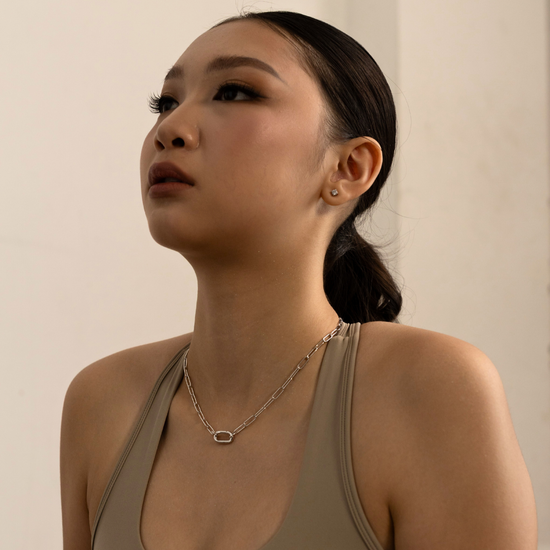 Its circle and rectangle connectors invite transformation - clip on a charm, wear it layered, rest your ring during workout, or keep it simple for quiet sophistication.